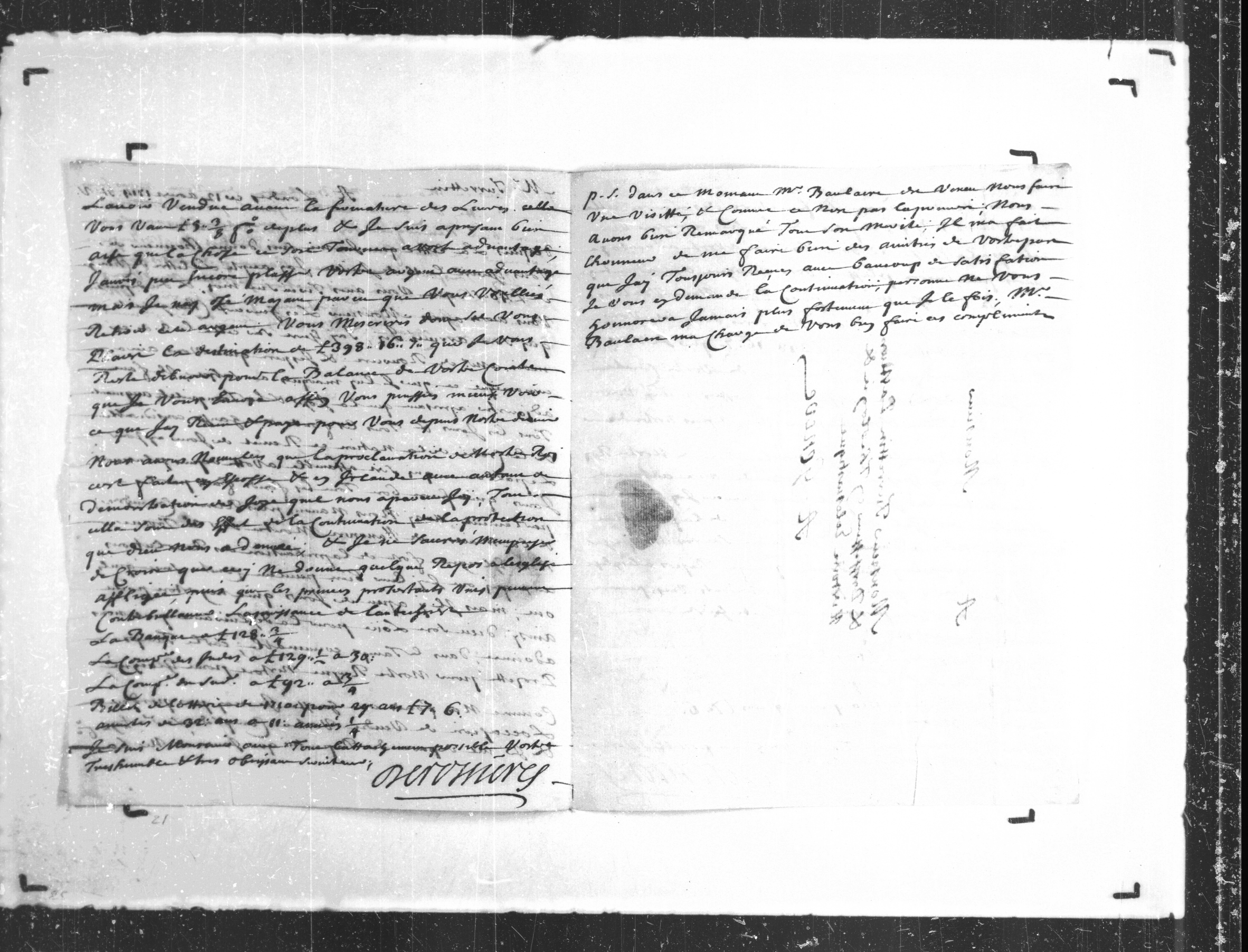 De Rossières a accepté la lettre de change de 40 livres que JA a tirée sur lui. Son correspondant aura certainement appris les heureux changements intervenus en Angleterre, au sujet desquels de Rossières a écrit à [Antoine] Rouvière. Il faut ajouter à ce qu'il a écrit qu'à présent la joie augmente chaque jour et tous les fonds sont à la hausse. Le crédit du pays se rétablit et le Parlement a décidé d'assumer tous les fonds votés par les Parlements précédents. On n'a plus rien à craindre; la mais...